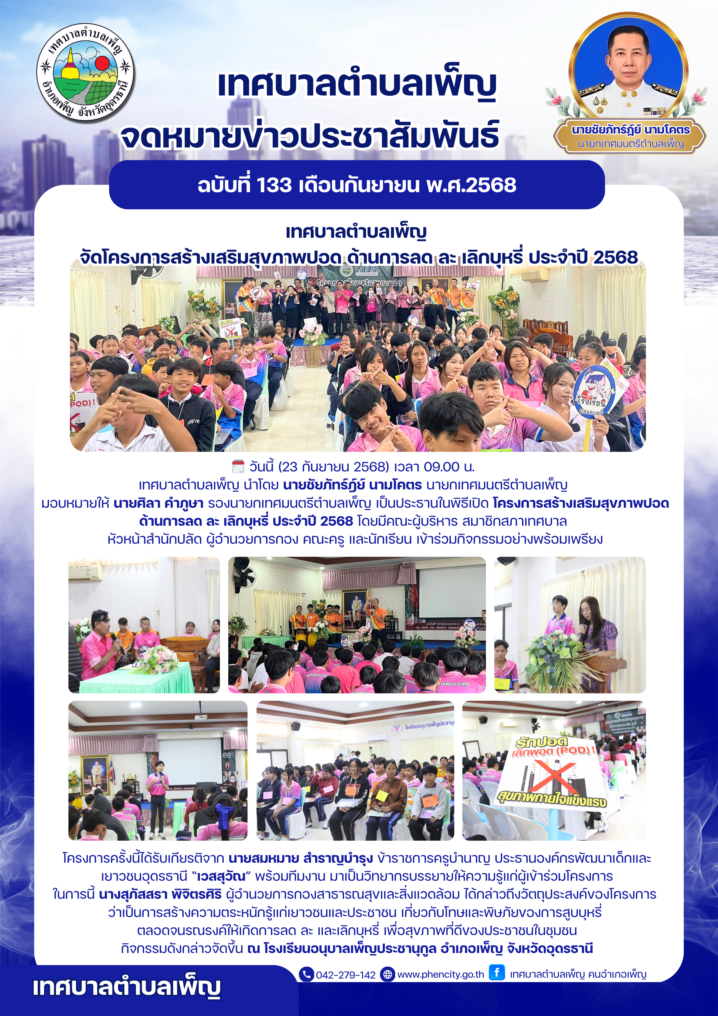 เทศบาลตำบลเพ็ญ จัดโครงการสร้างเสริมสุขภาพปอด ด้านการละ ละ เลิกบุหรี่ ประจำปี 2568