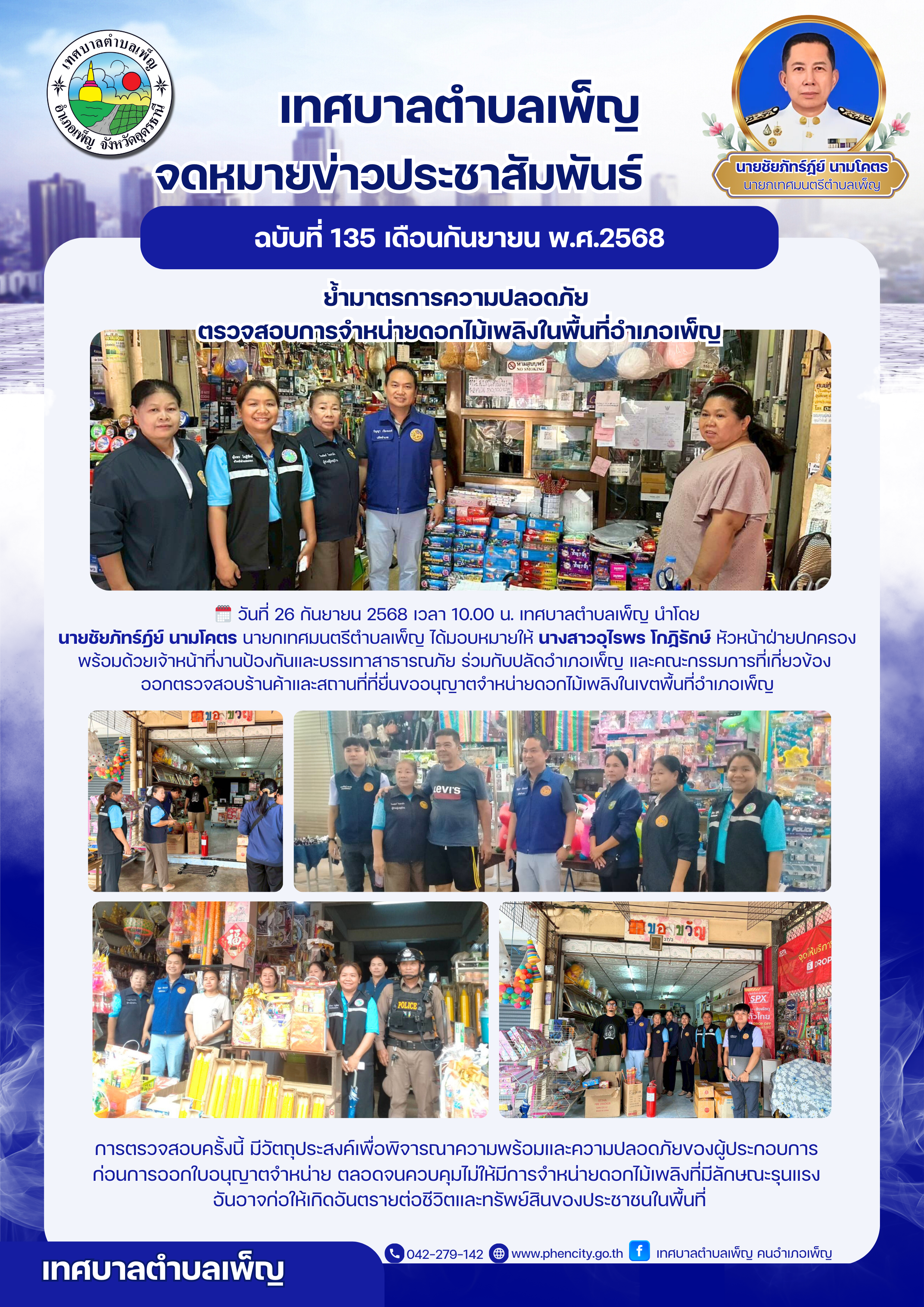 ย้ำมาตรการความปลอดภัย ตรวจสอบการจำหน่ายดอกไม้ไฟในพื้นที่อำเภอเพ็ญ
