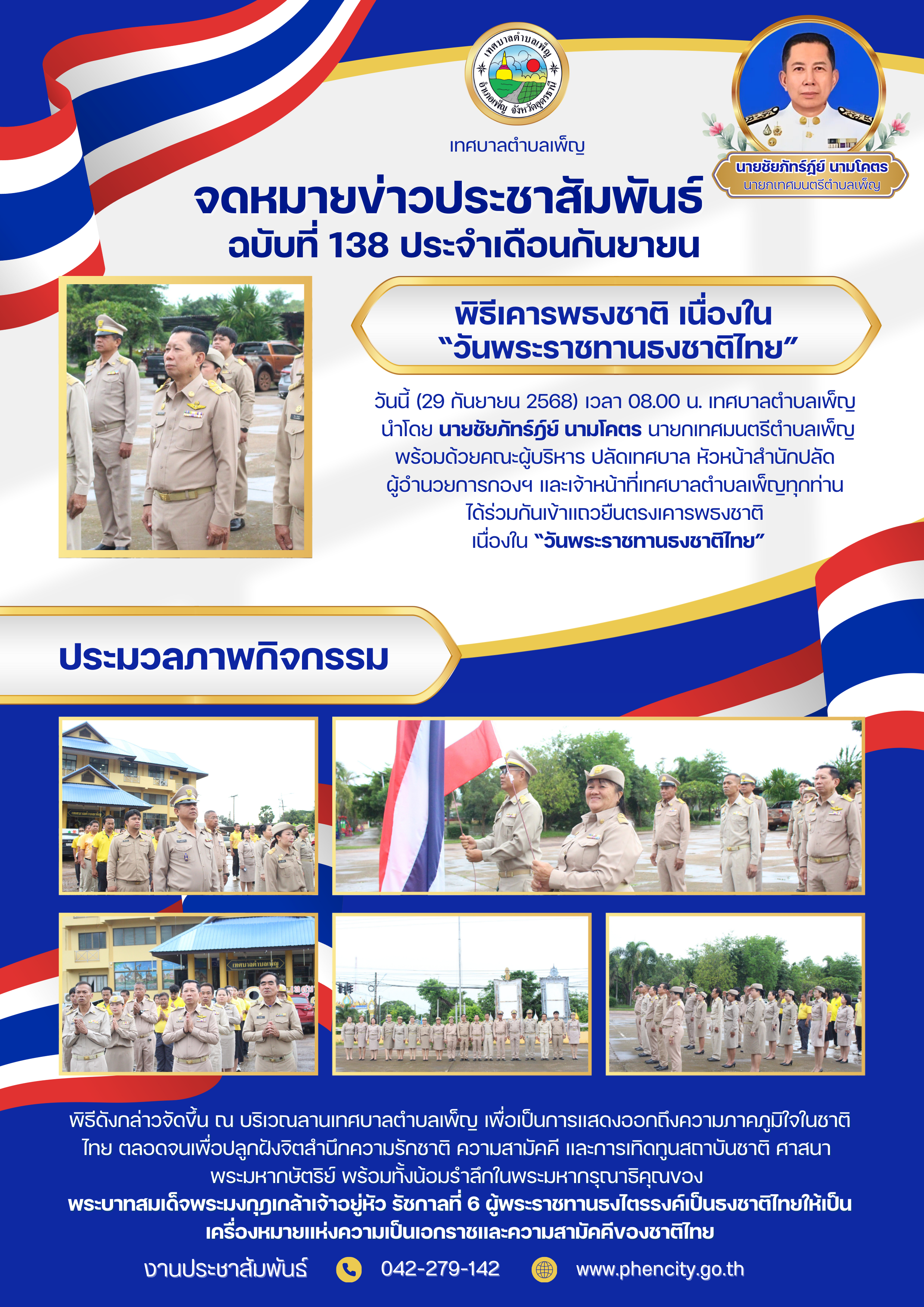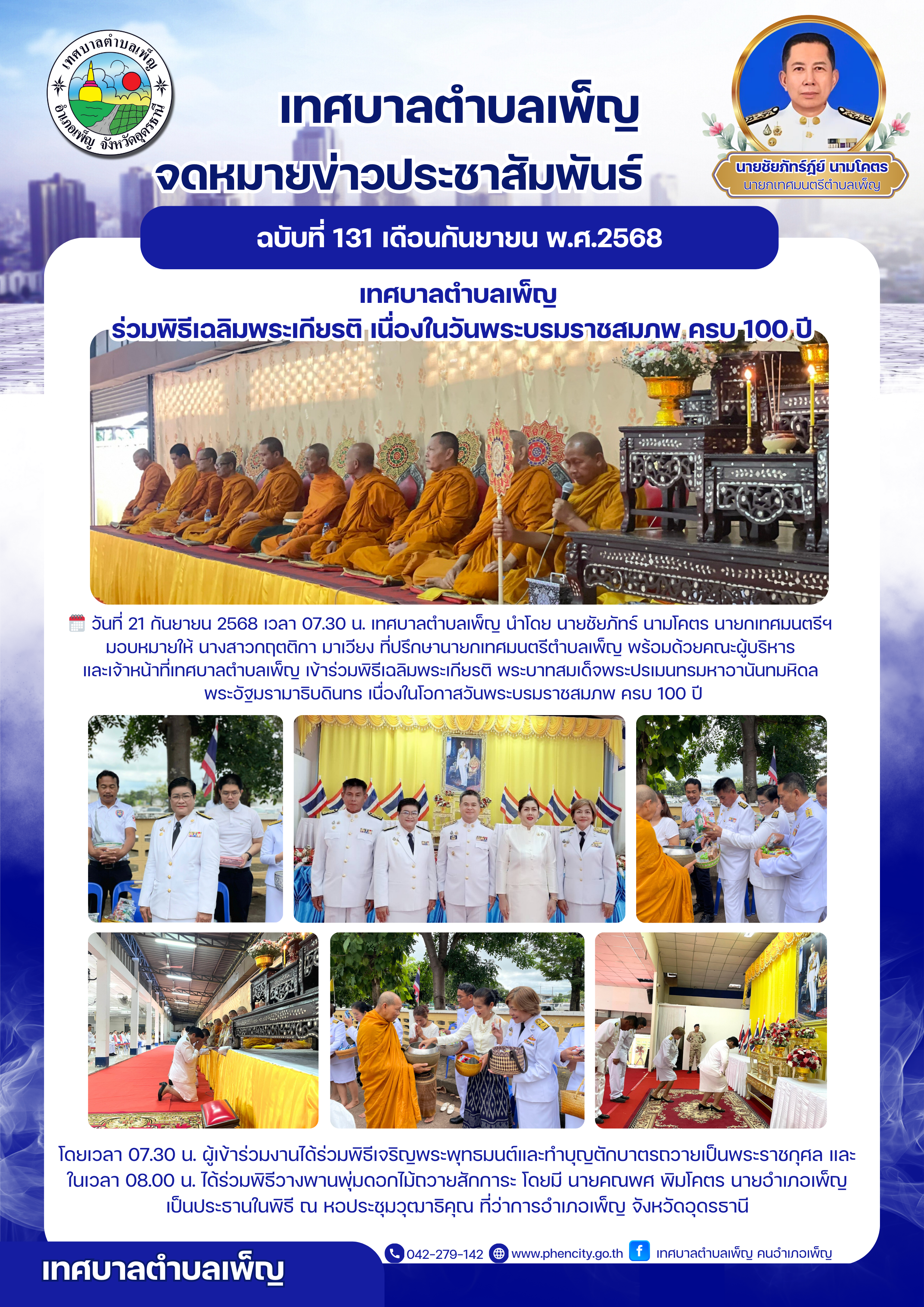 เทศบาลตำบลเพ็ญ ร่วมพิธีเฉลิมพระเกียรติ เนื่องในวันพระบรมราชสมภพ ครบ 100 ปี