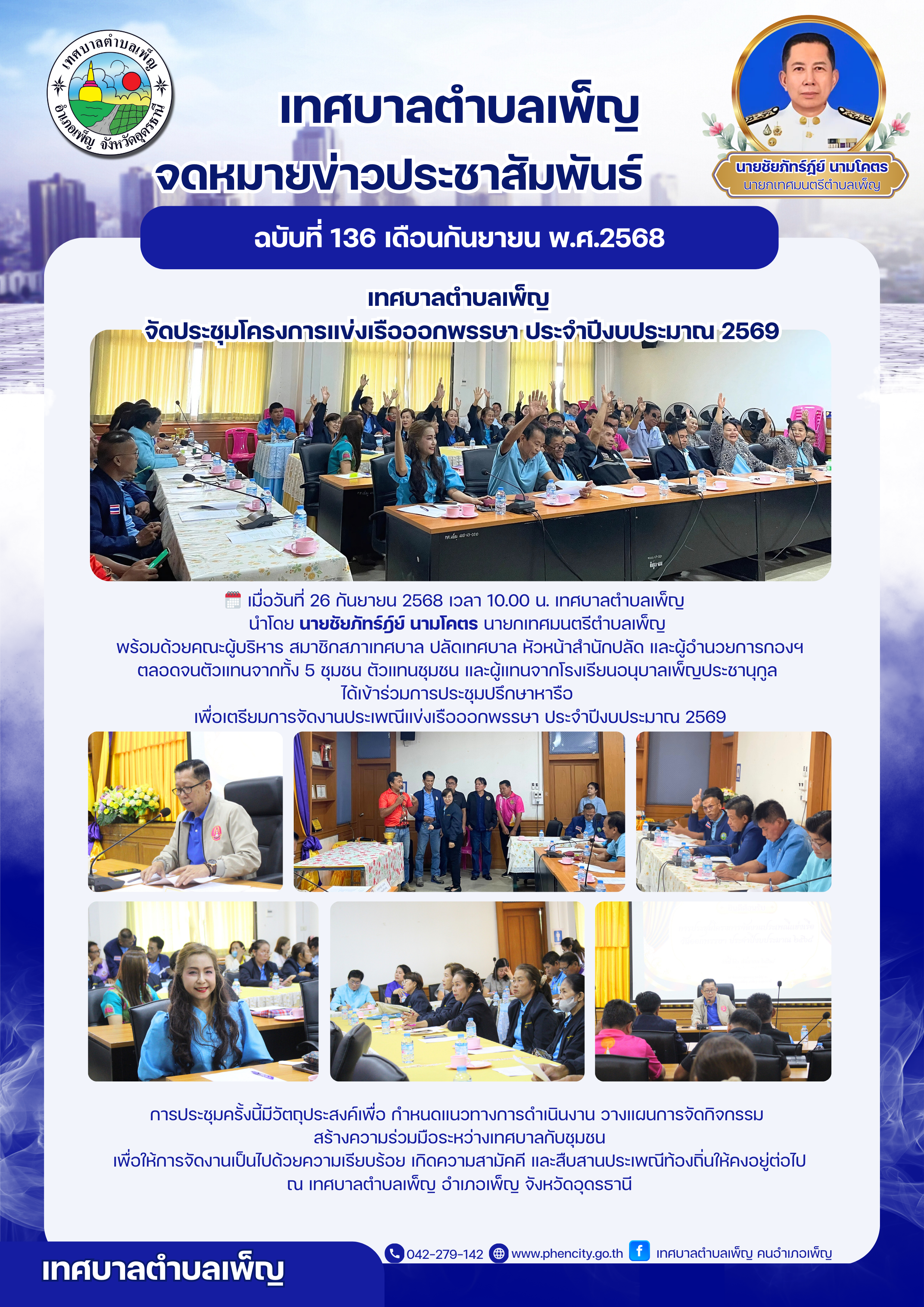 เทศบาลตำบลเพ็ญ จัดประชุมโครงการแข่งเรือออกพรรษา ประจำปีงบประมาณ 2569