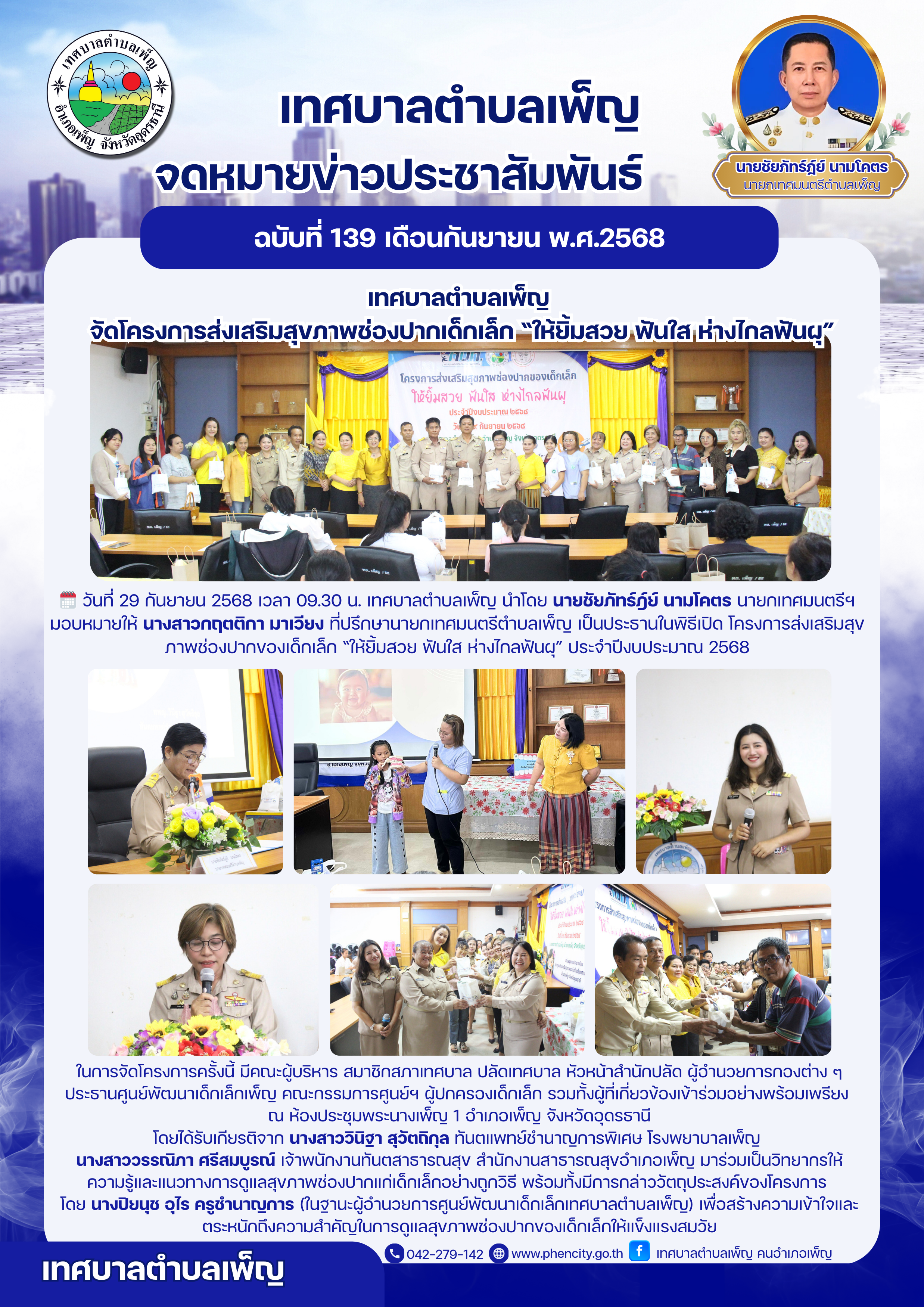 เทศบาลตำบลเพ็ญ จัดโครงการส่งเสิรมสุขภาพช่องปากเด็กเล็ก ให้ยิ้มสวย ฟันใส ห่างไกลฟันผุ